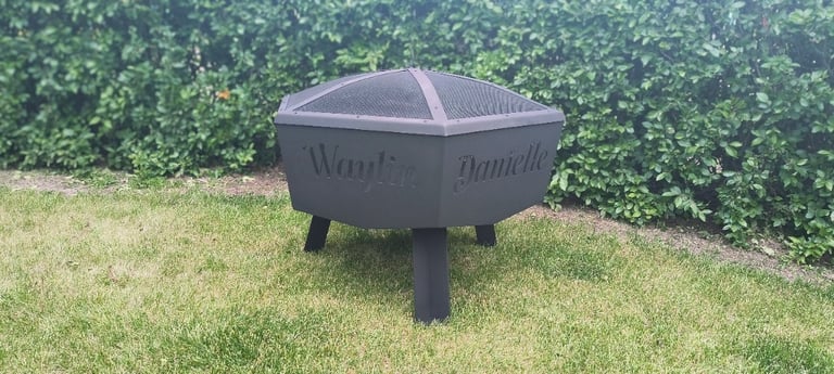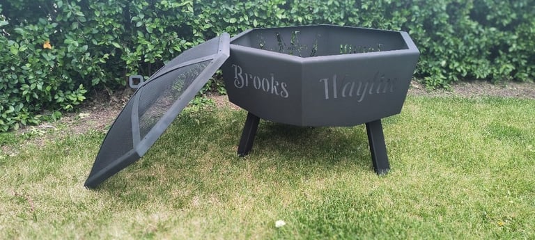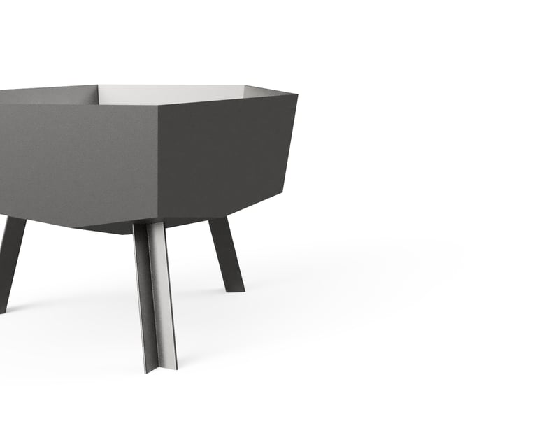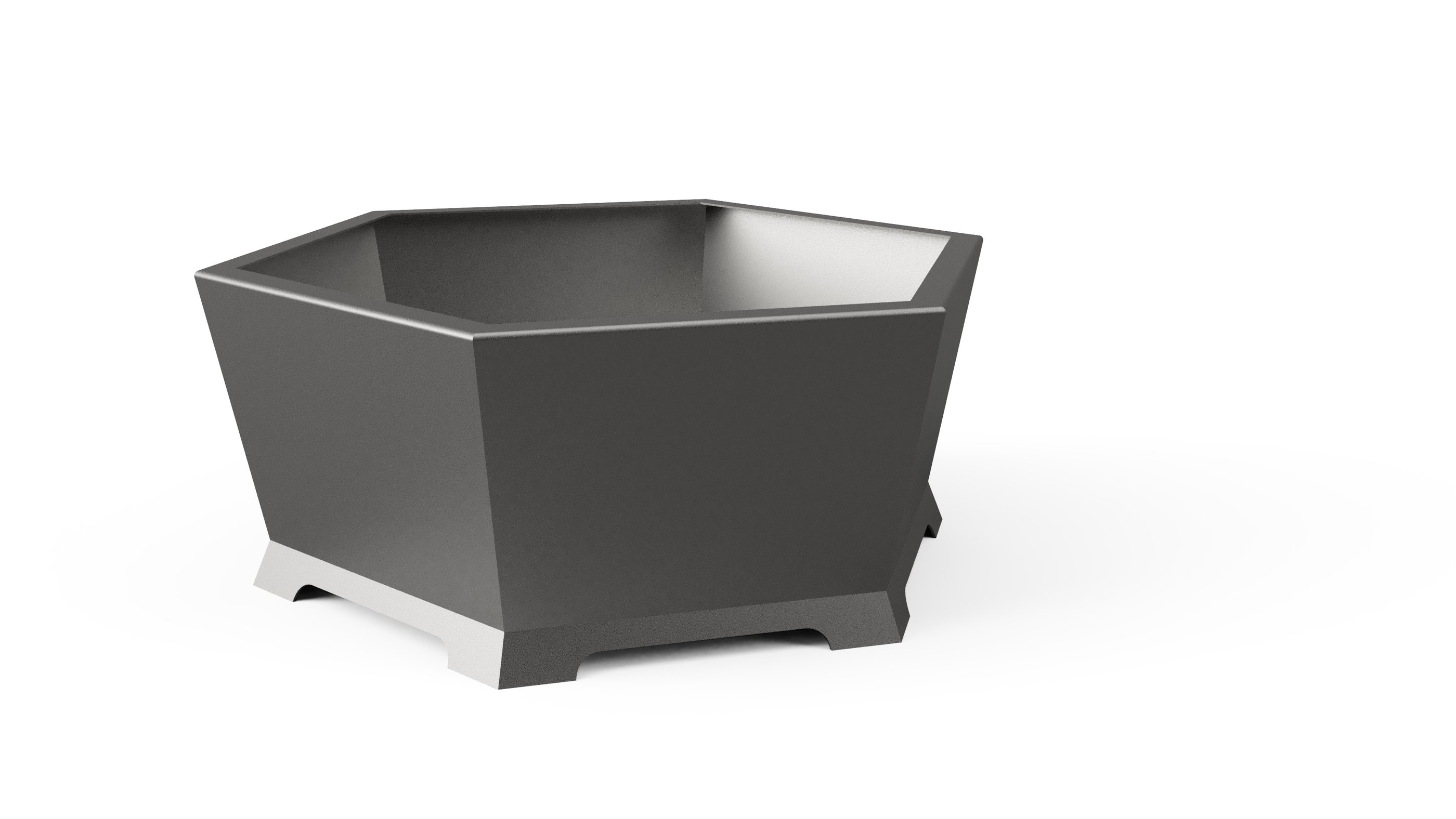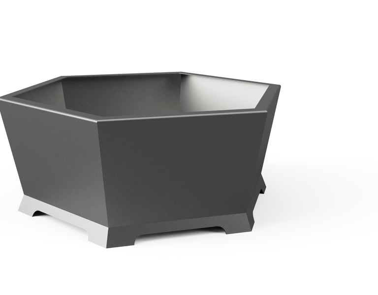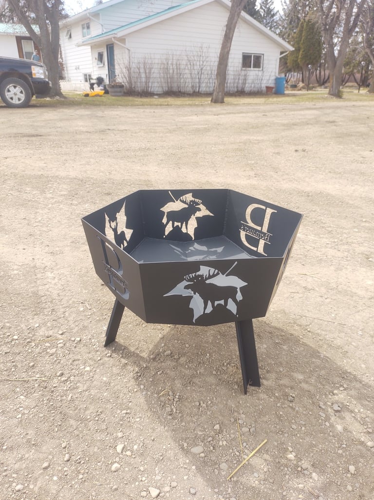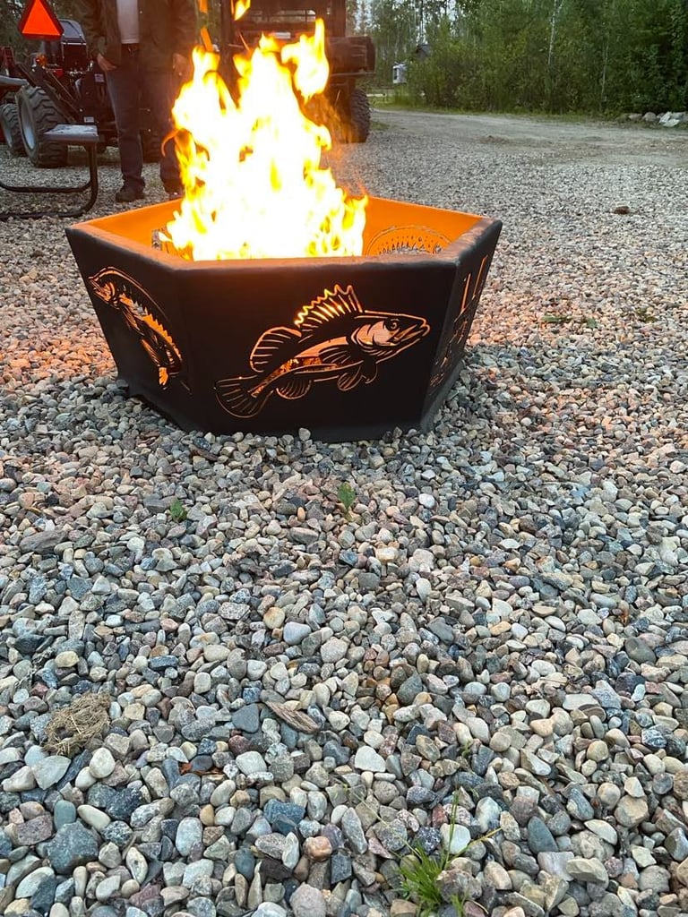 The base price on hexagonal firepits includes three custom designs, each used twice.