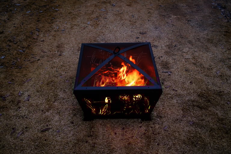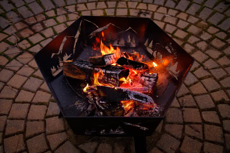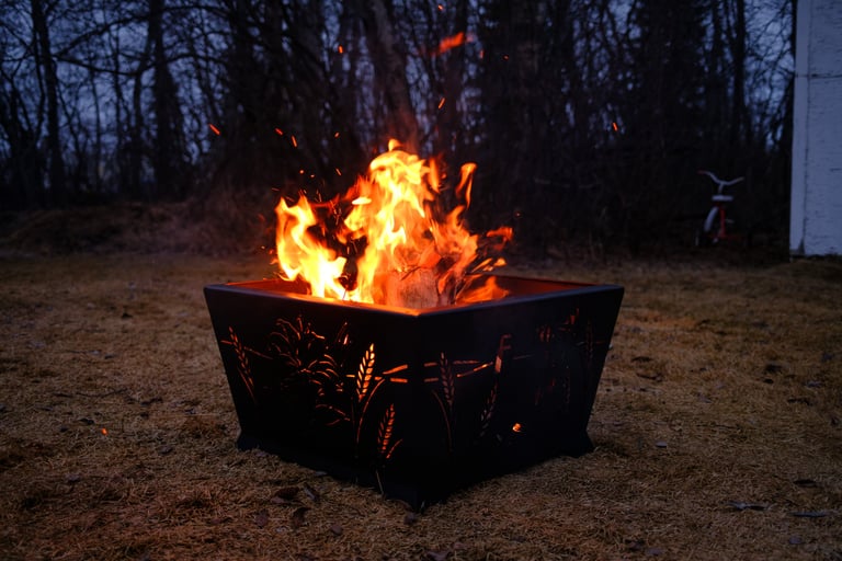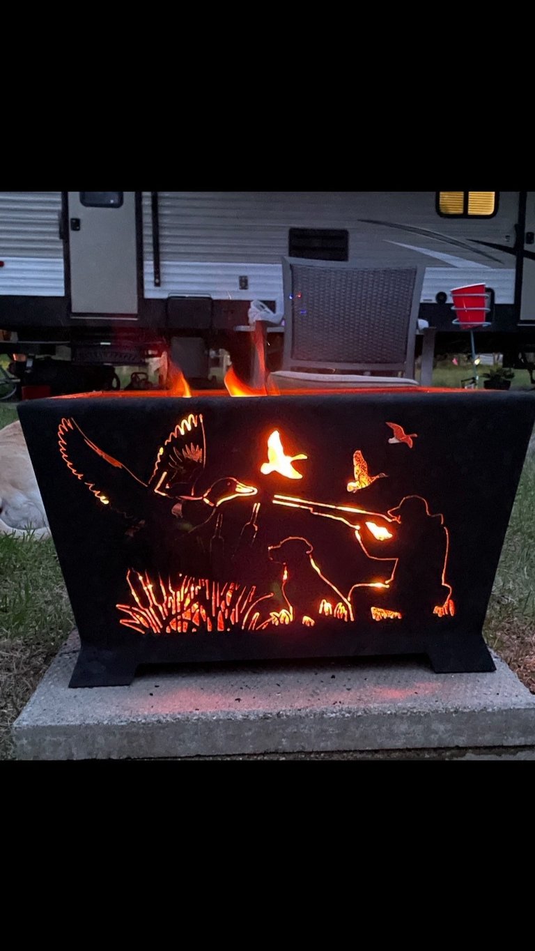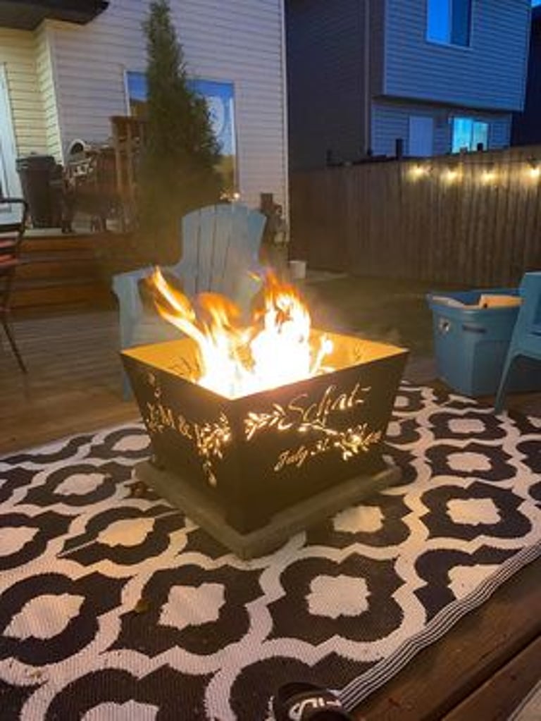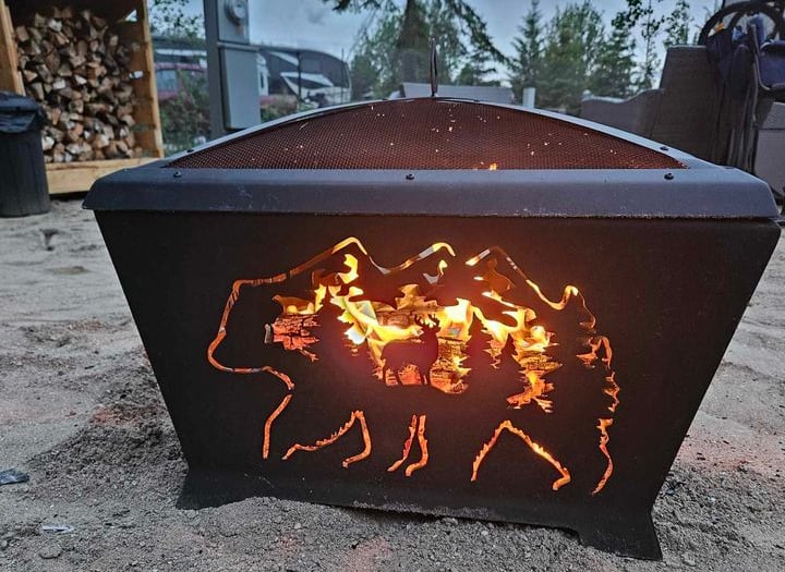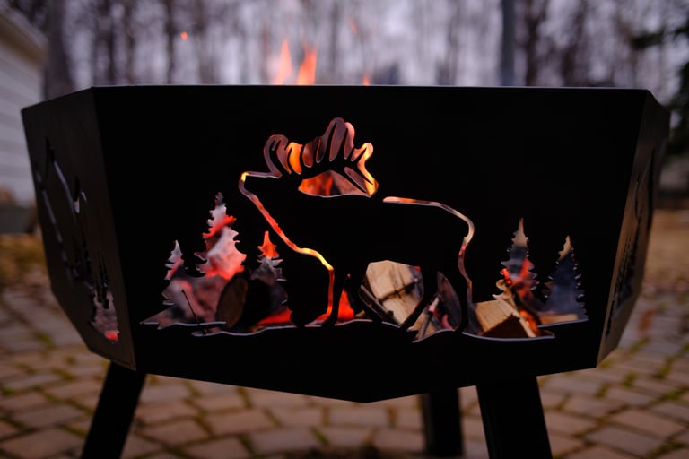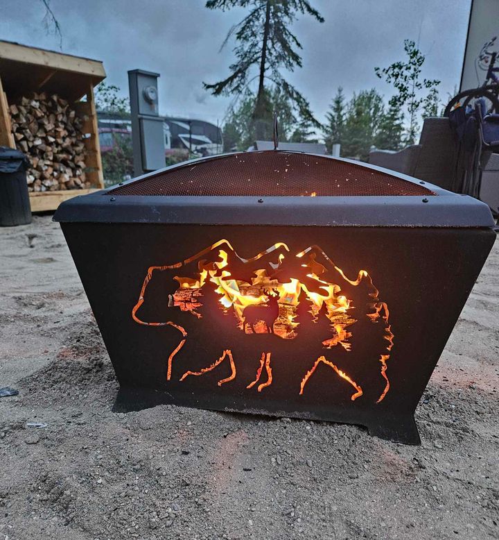 All of our firepits are made from durable 10 gauge steel. They are manufactured with reinforcing bends and skillfully welded. Each model is thoughtfully designed to have a bottom with drainage holes and legs to elevate them off the ground. This ensures your pit will last for years to come. Each pit allows you to choose meaningful designs and work with us to bring them to life.