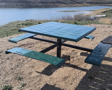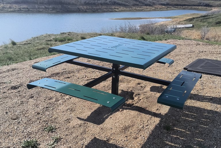 These tables are ideal for public spaces. The tough powder coated finish resists the harsh Canadian elements.